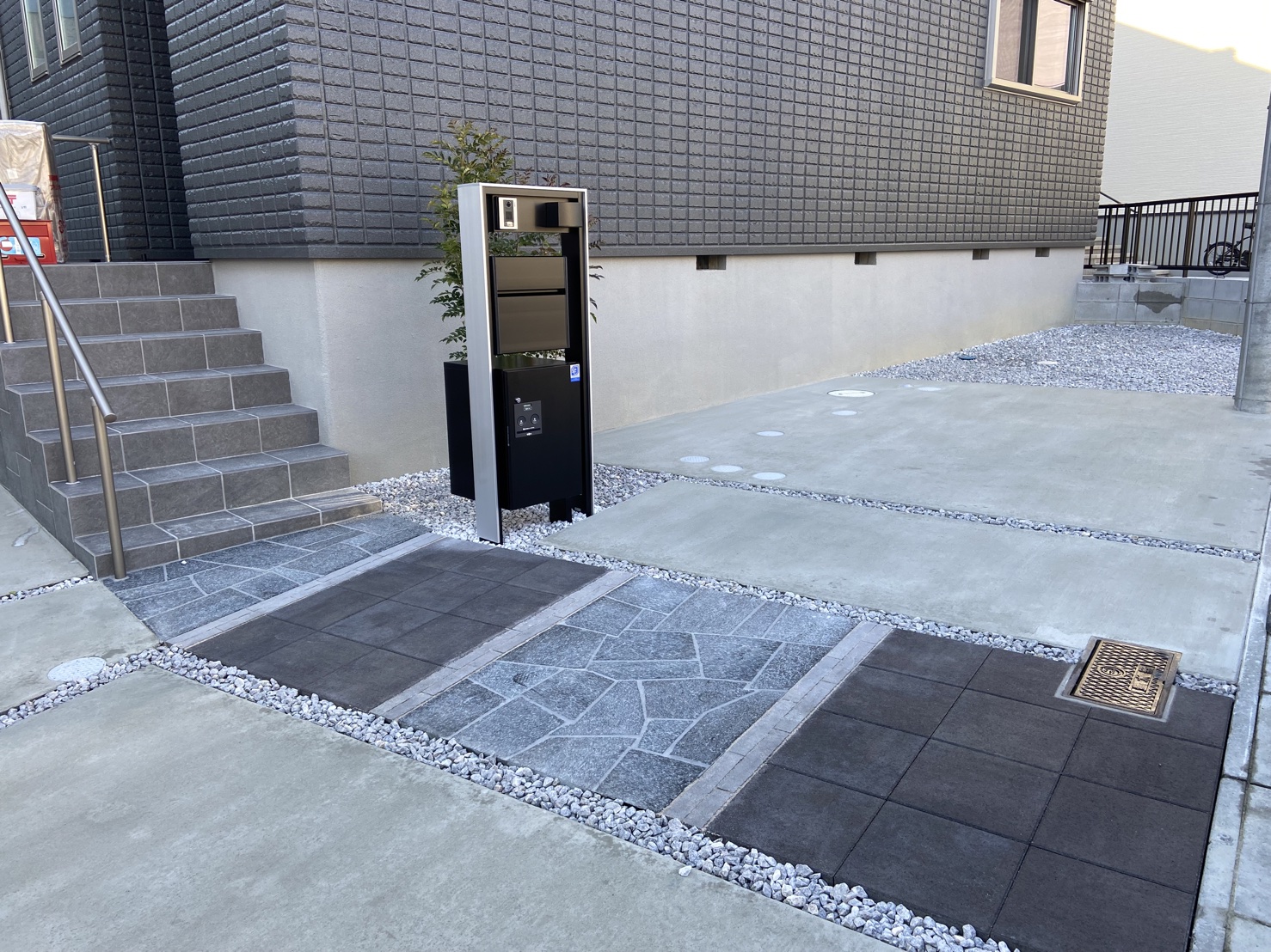 アプローチ部分には三種類の形状で異素材の物を使用する事で、デザインの幅が広がりオシャレを底上げしてくれます♪
