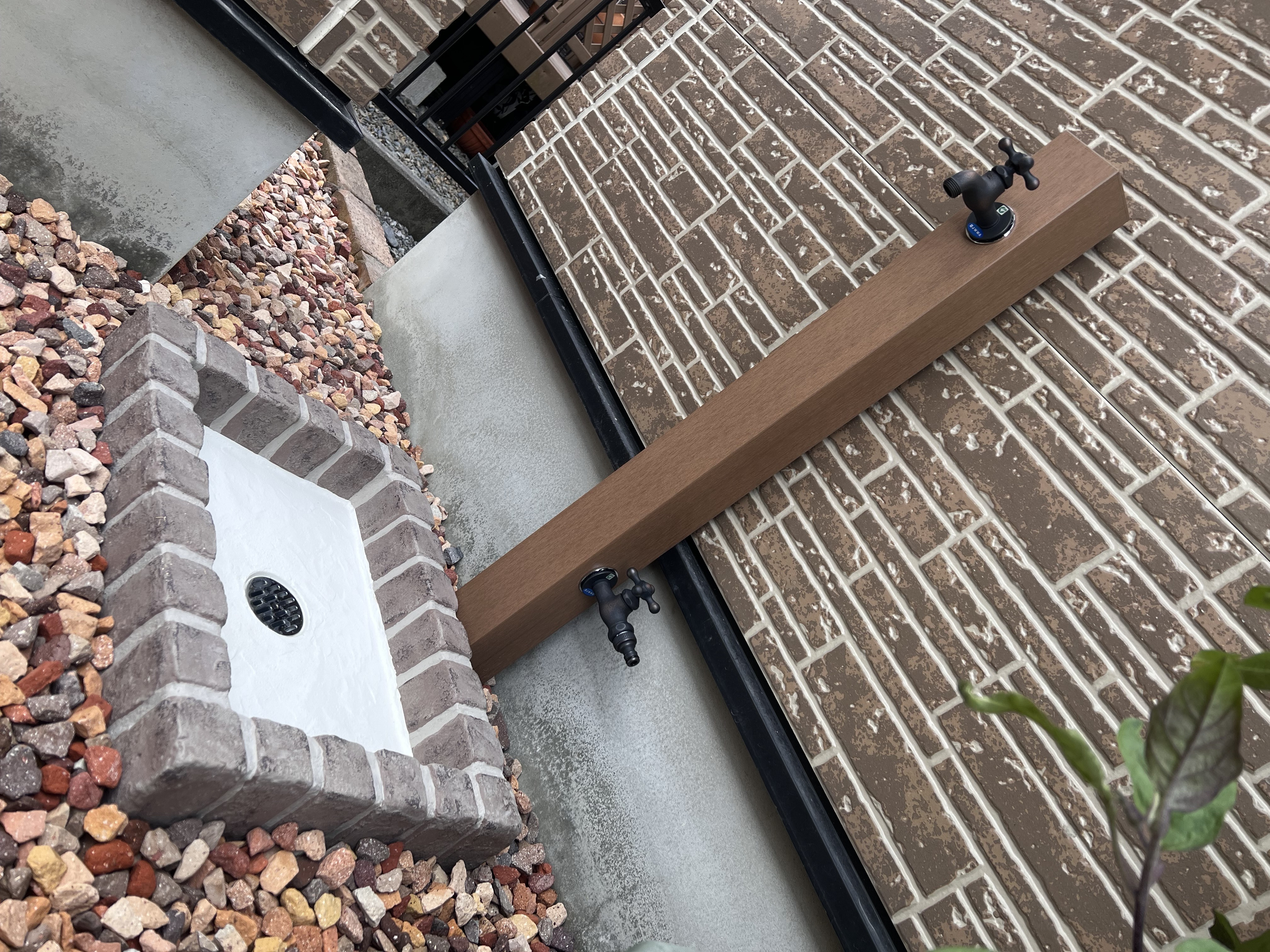 レンガ部分はあえて深みのあるアンティークな物を使用する事で、カジュアルになりすぎず