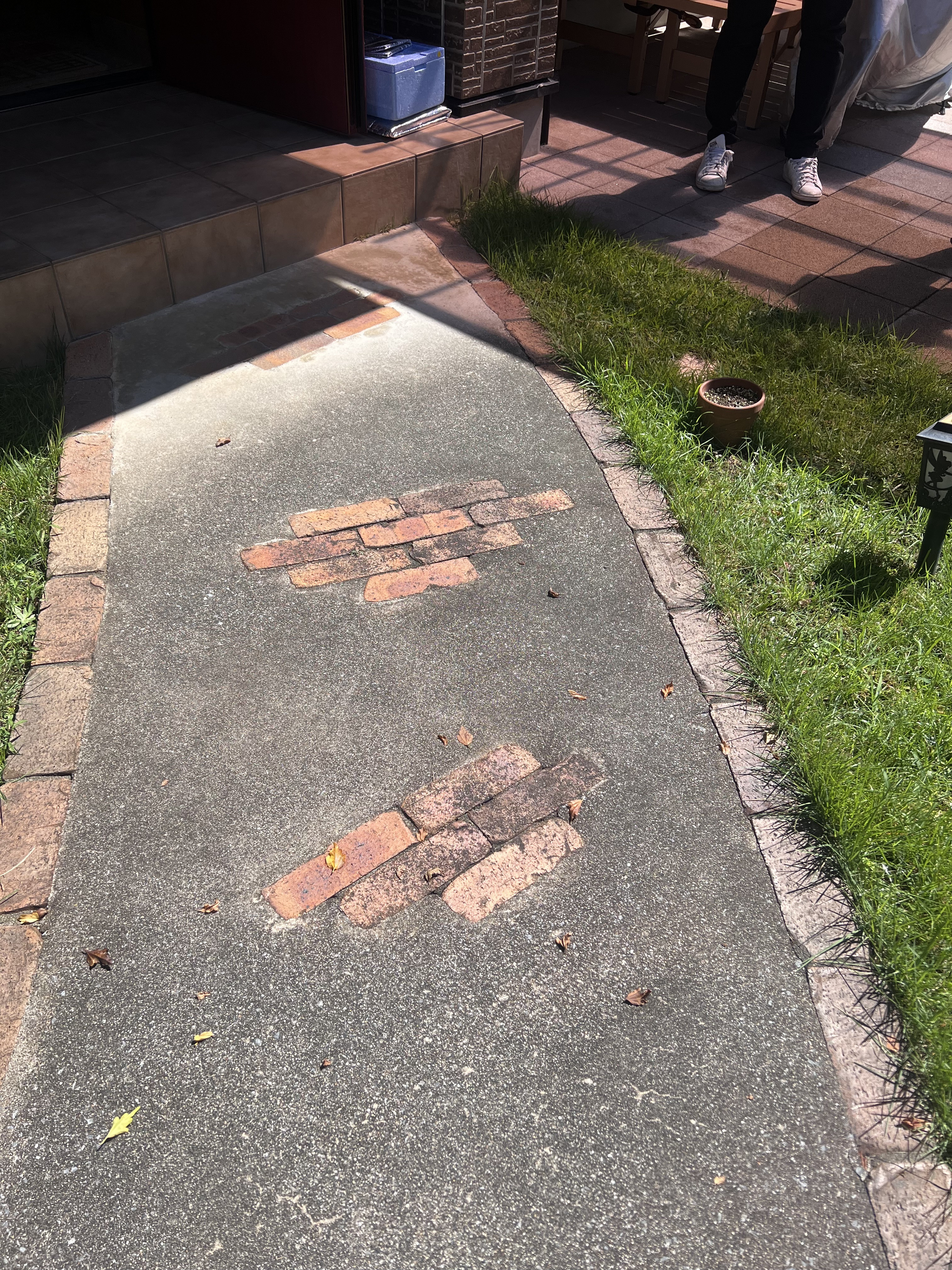 土留めのレンガブロックをなくしてアプローチ部分は直接玄関まで行けるようスロープにしてほしいとのご要望でした。