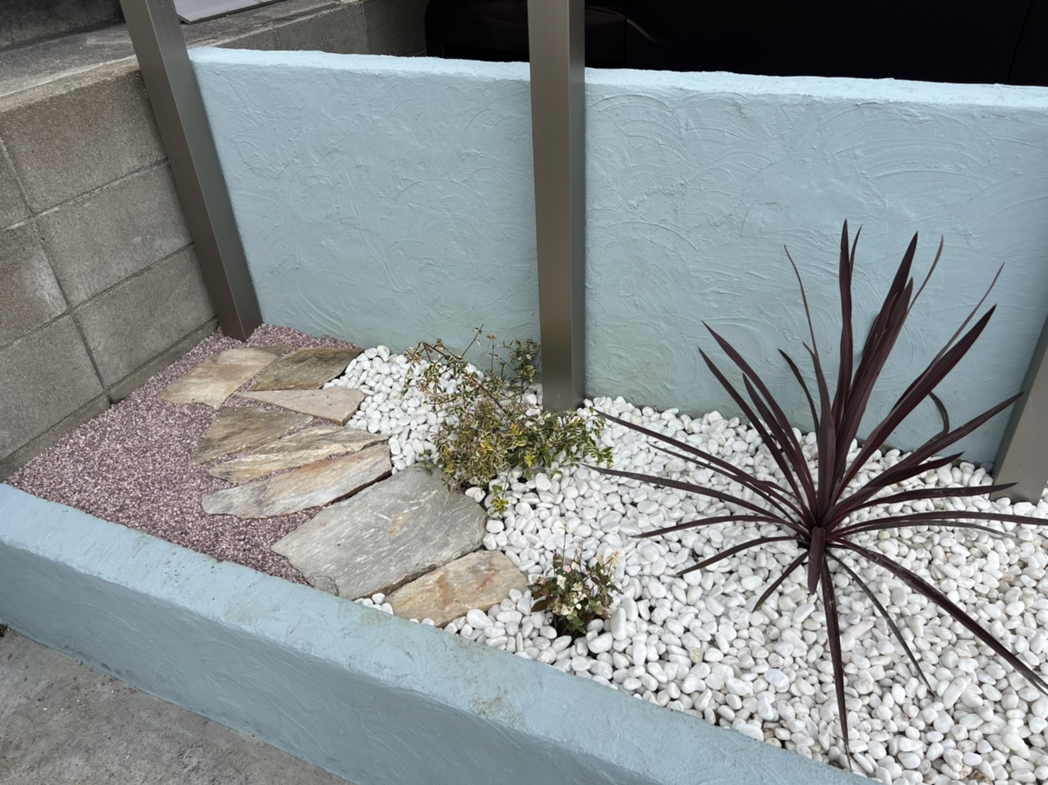 このくらいの花壇スペースなら砂利と石を使ってササッと簡単にDIYできちゃいますよ♪