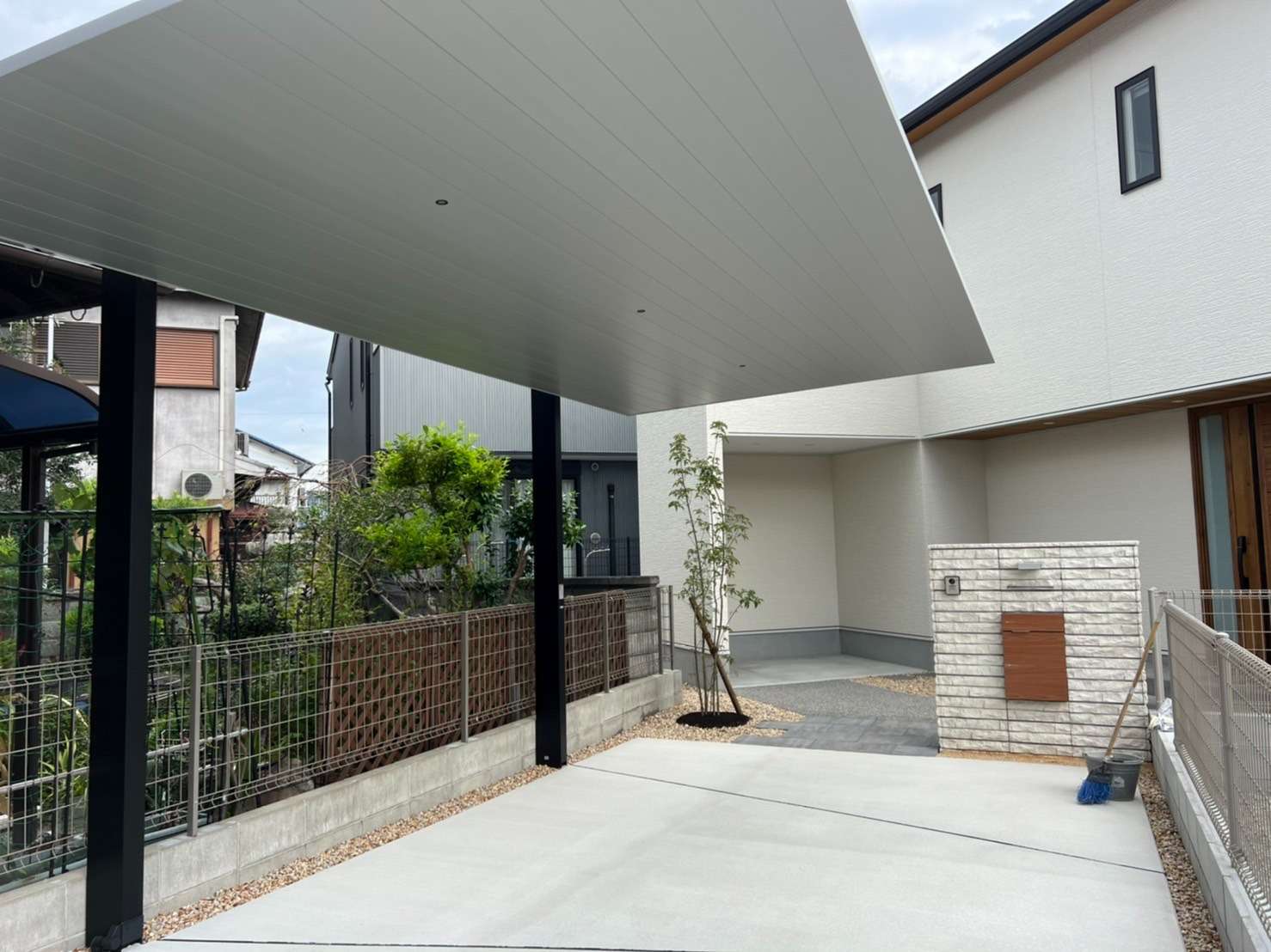 今回は主役であるカーポートをはじめ、使用している商品の素材・お色をより建物に溶け込むよう外構計画をさせて頂きました!