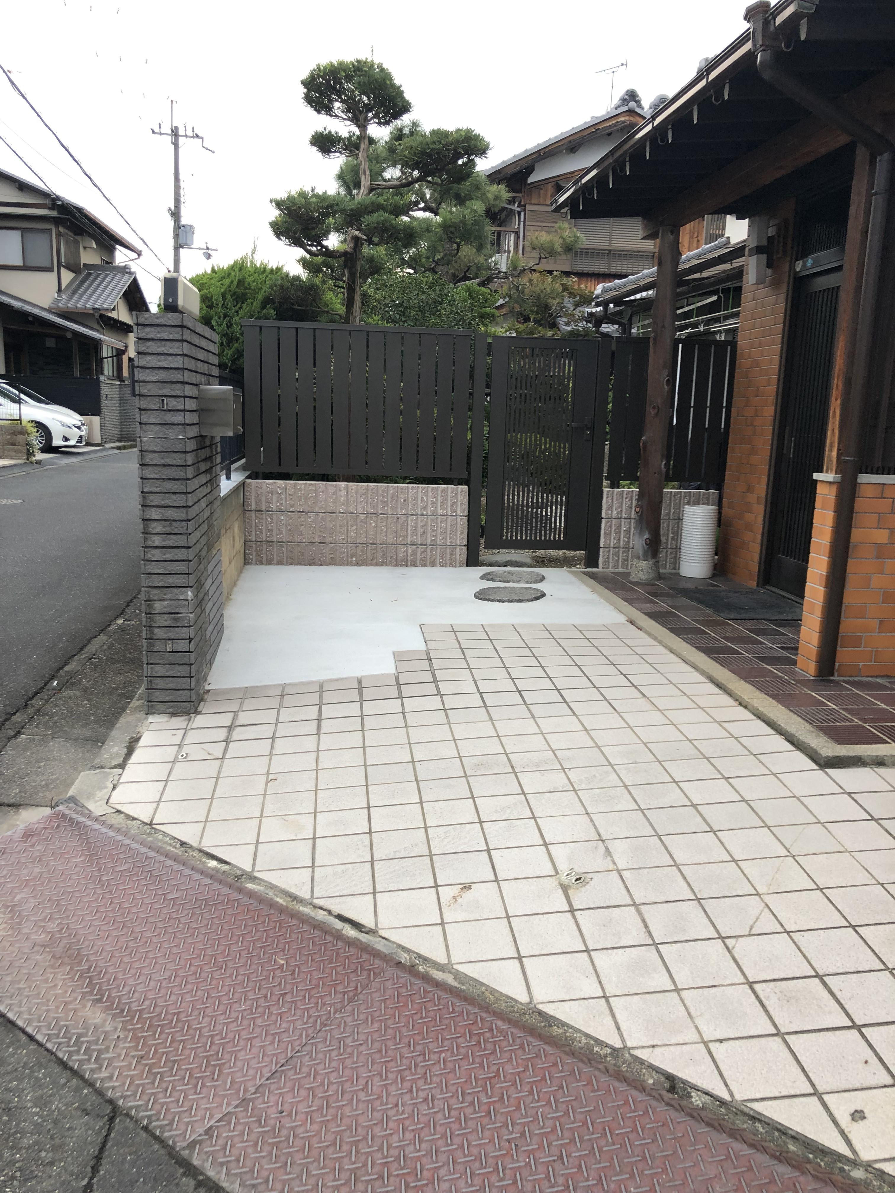既存のタイルと飛び石は活かしつつ、駐車スペースを土間コンクリートにする。
