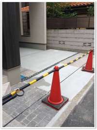 狭い敷地を利用しての駐車スペースですので、邪魔にならないように機能門柱を使用しました。木目調で少しかわいらしさもあるタイプです。アプローチにはインターロッキングを敷き目地でアクセントをつけました。