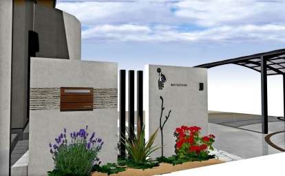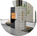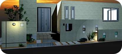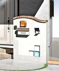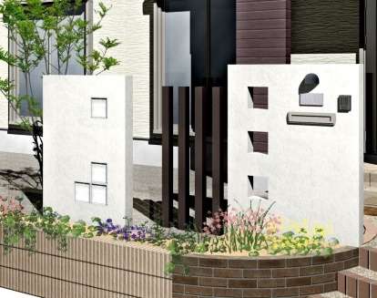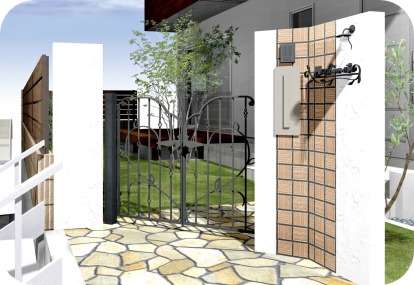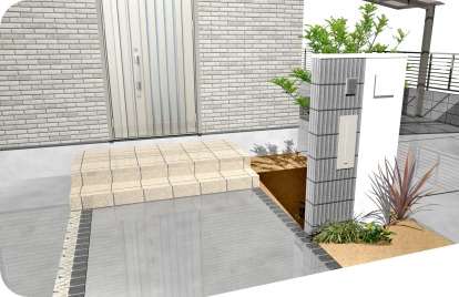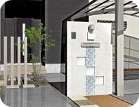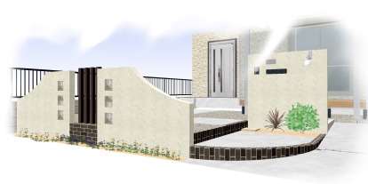 壁を一直線に長く広くしてしまうとどうしてものっぺりしてしまうので、互い違いに配置しガラスブロックなどでアクセントを設けます。そうすることで立体的におしゃれになります。
