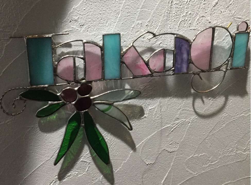ガラスと真鍮棒を組み合わせた文字で作っています。