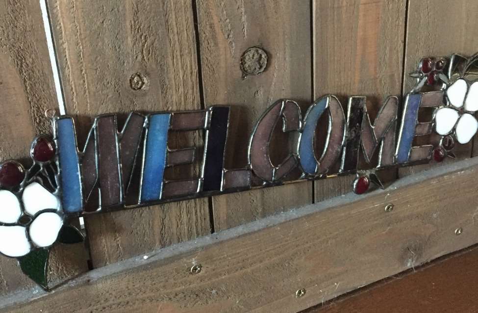 文字だけでは少し物足りないため、両側にハナミズキ・センニチコウをイメージしたモチーフを取り付けました。