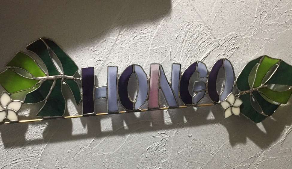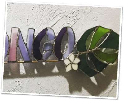 文字だけでは少し物足りないため、両側にモンステラの葉をイメージしたモチーフを取り付けました。
